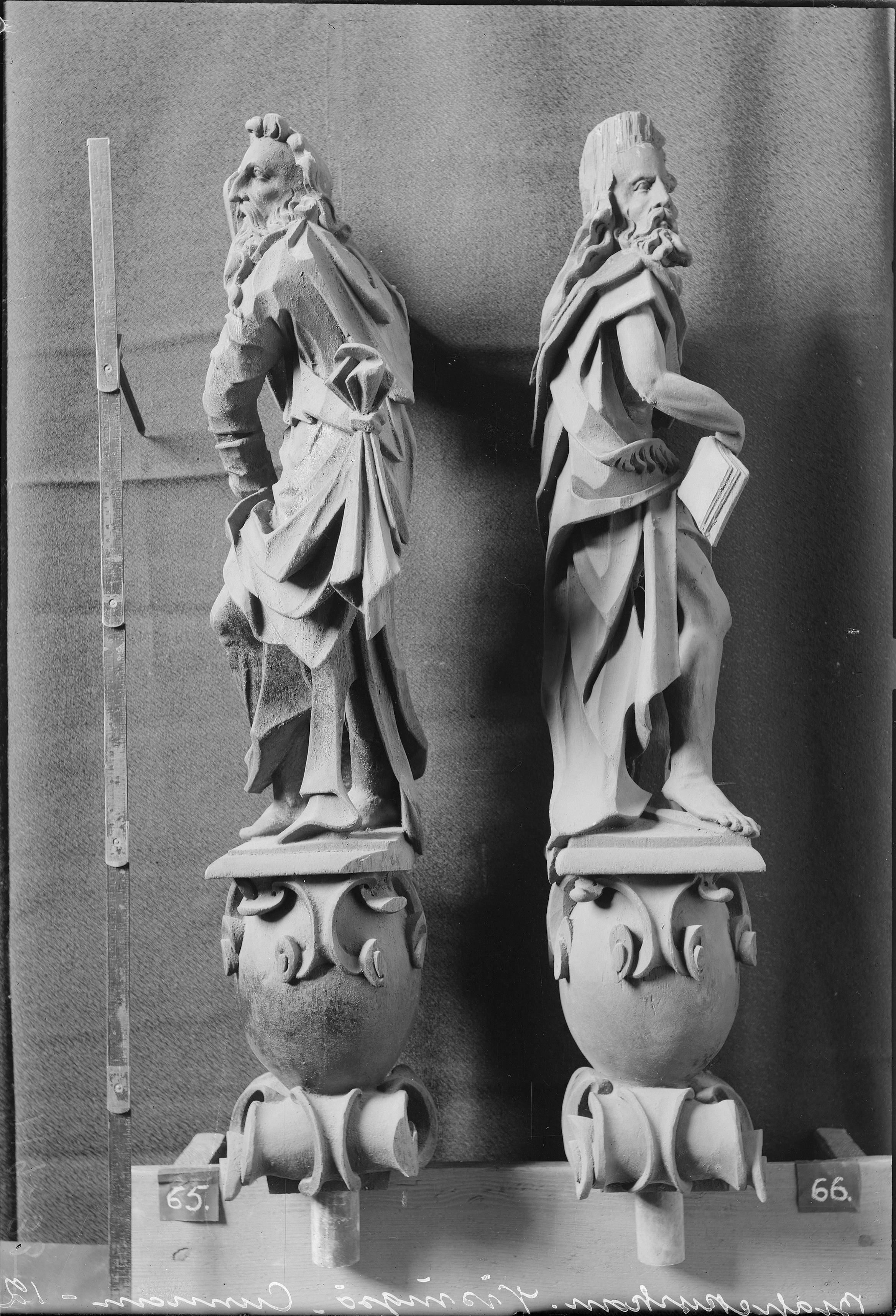 • Korskranket, skulpterade figurer, Mose och Aron.