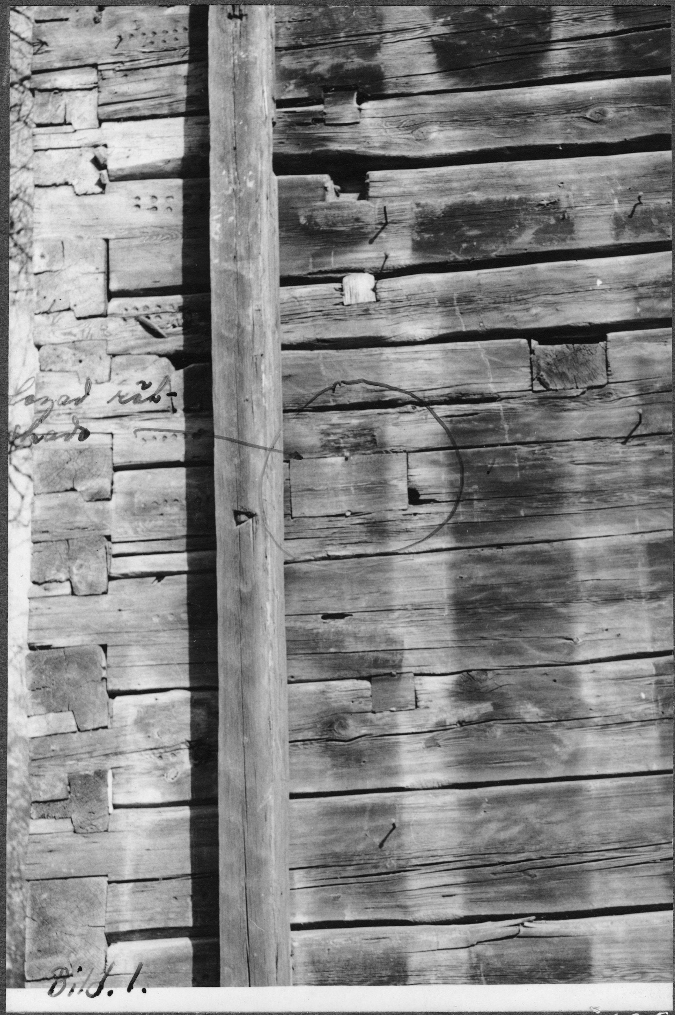 • Detalj av kyrkans ena vägg (hänvisar till 1 på bildbeteckning 3828-19.TIF).