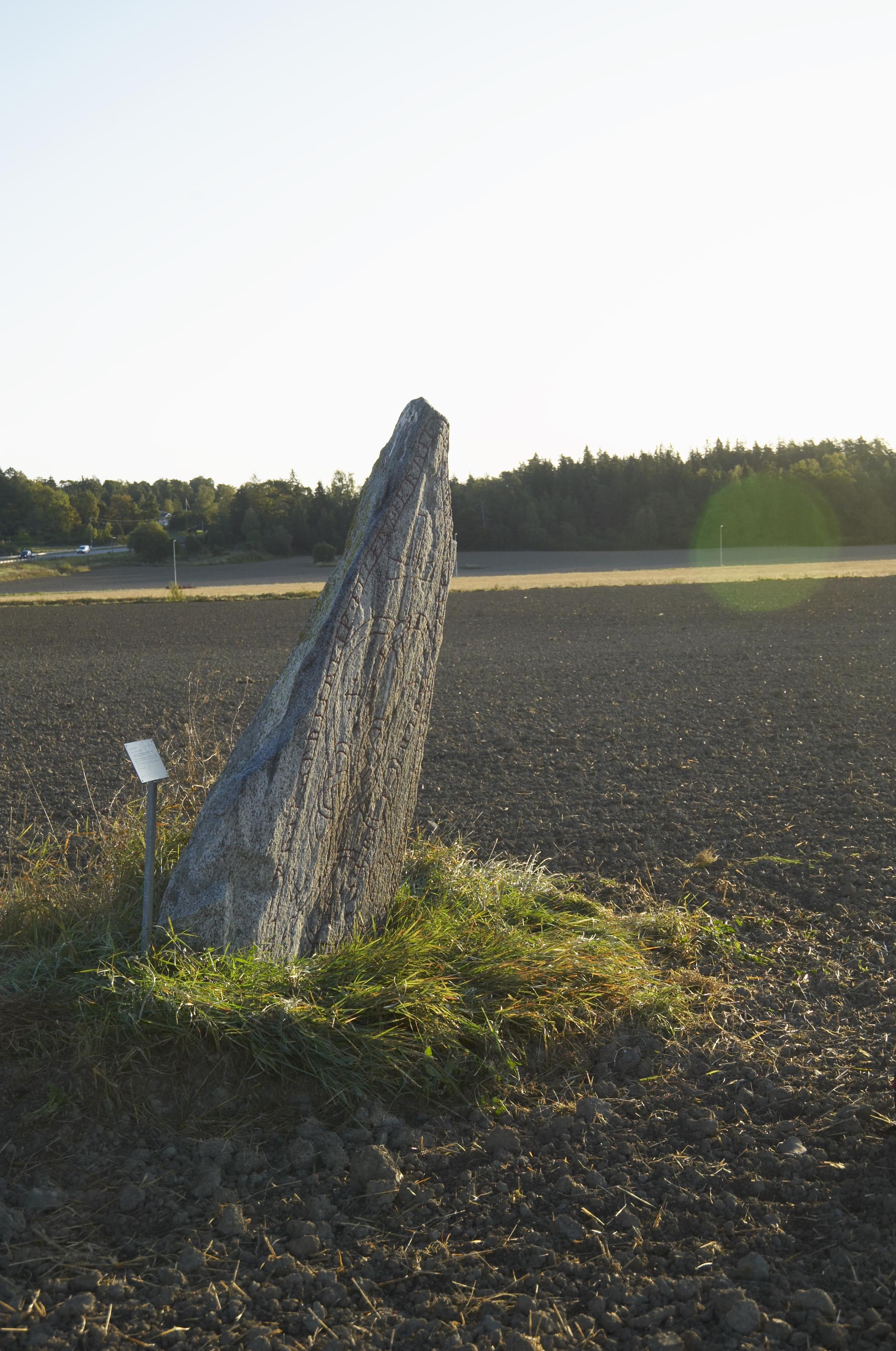 RAÄ-nummer Danmark 8:1. Inskriften lyder: "Gärdar och Ulv och Holmbjörn och Åbjörn och Rune de läto hugga stenen efter Jarl, sin fader, Arnfrid efter sin man." Fotosyfte: Dokumentation