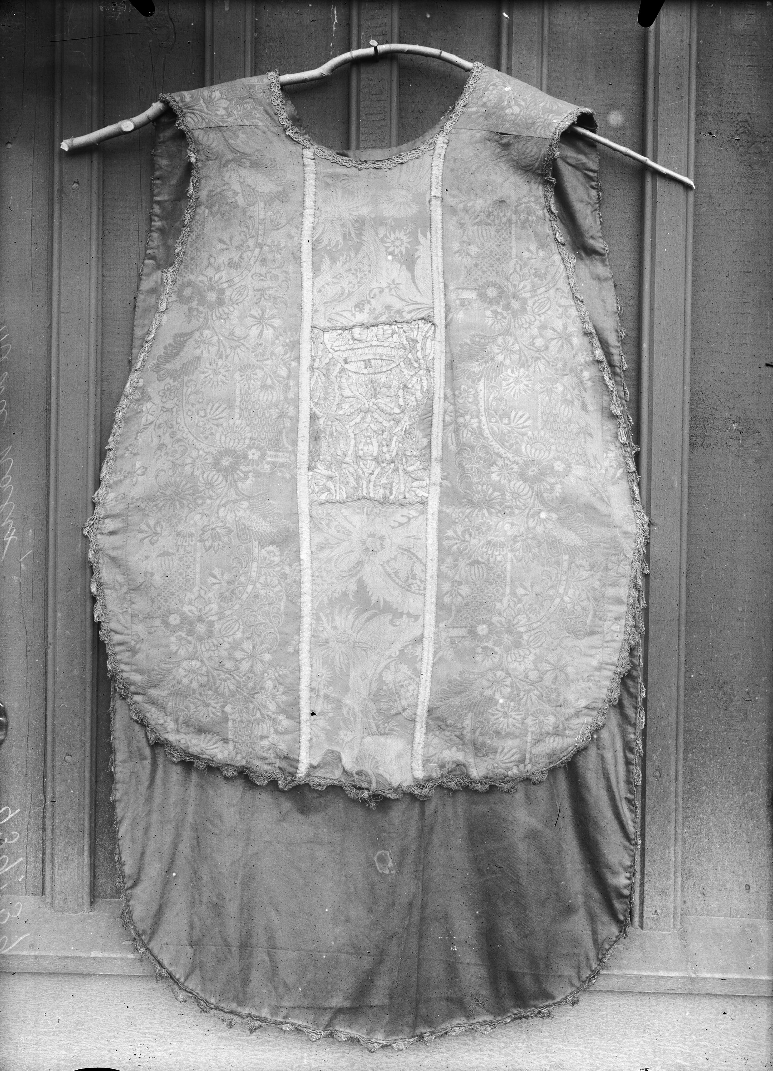 • Mässhake, rött, mönstrat siden, 1700-talet
