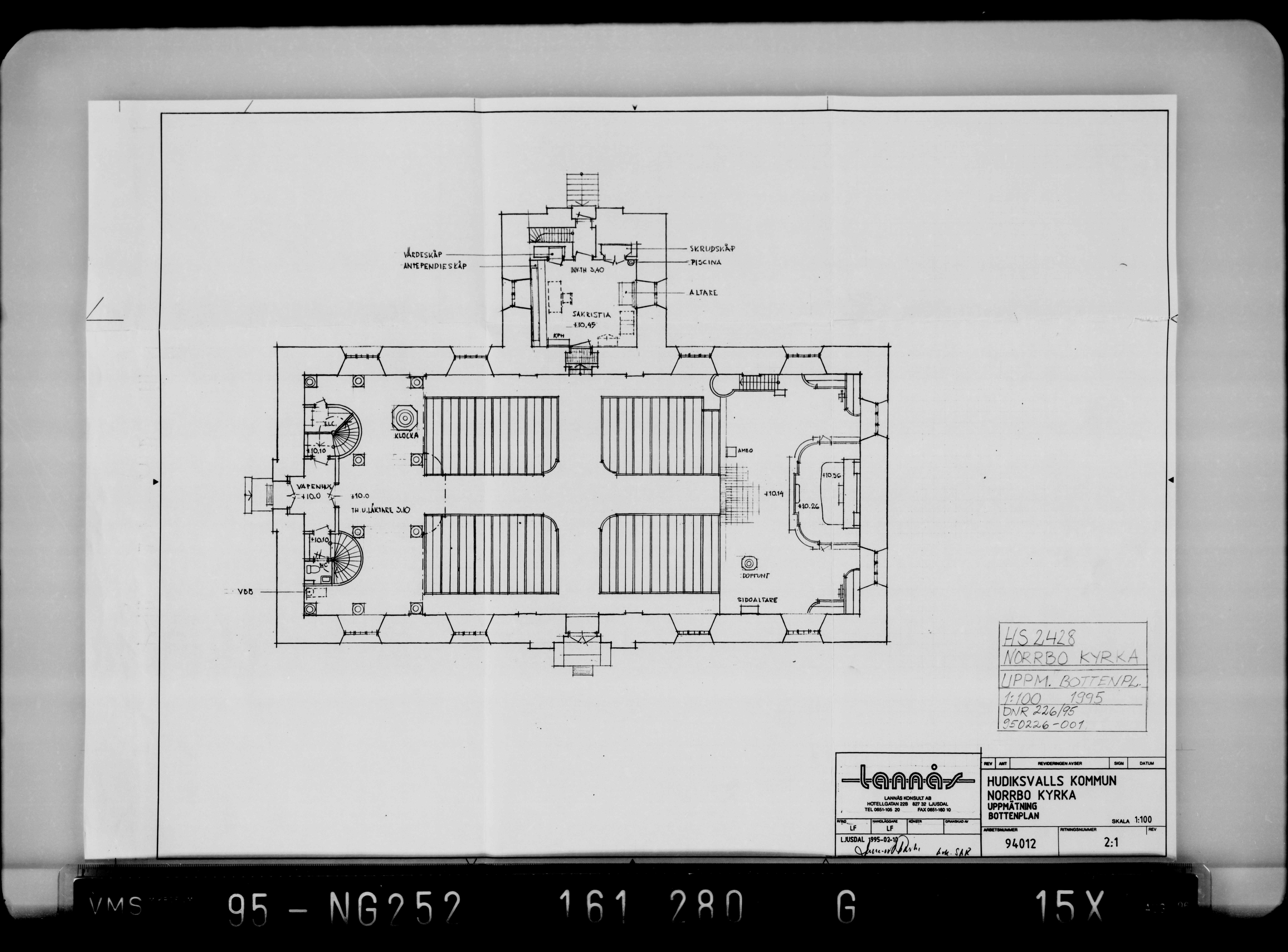 • Originalets skala: 1:100. Fysisk ritning är gallrad.