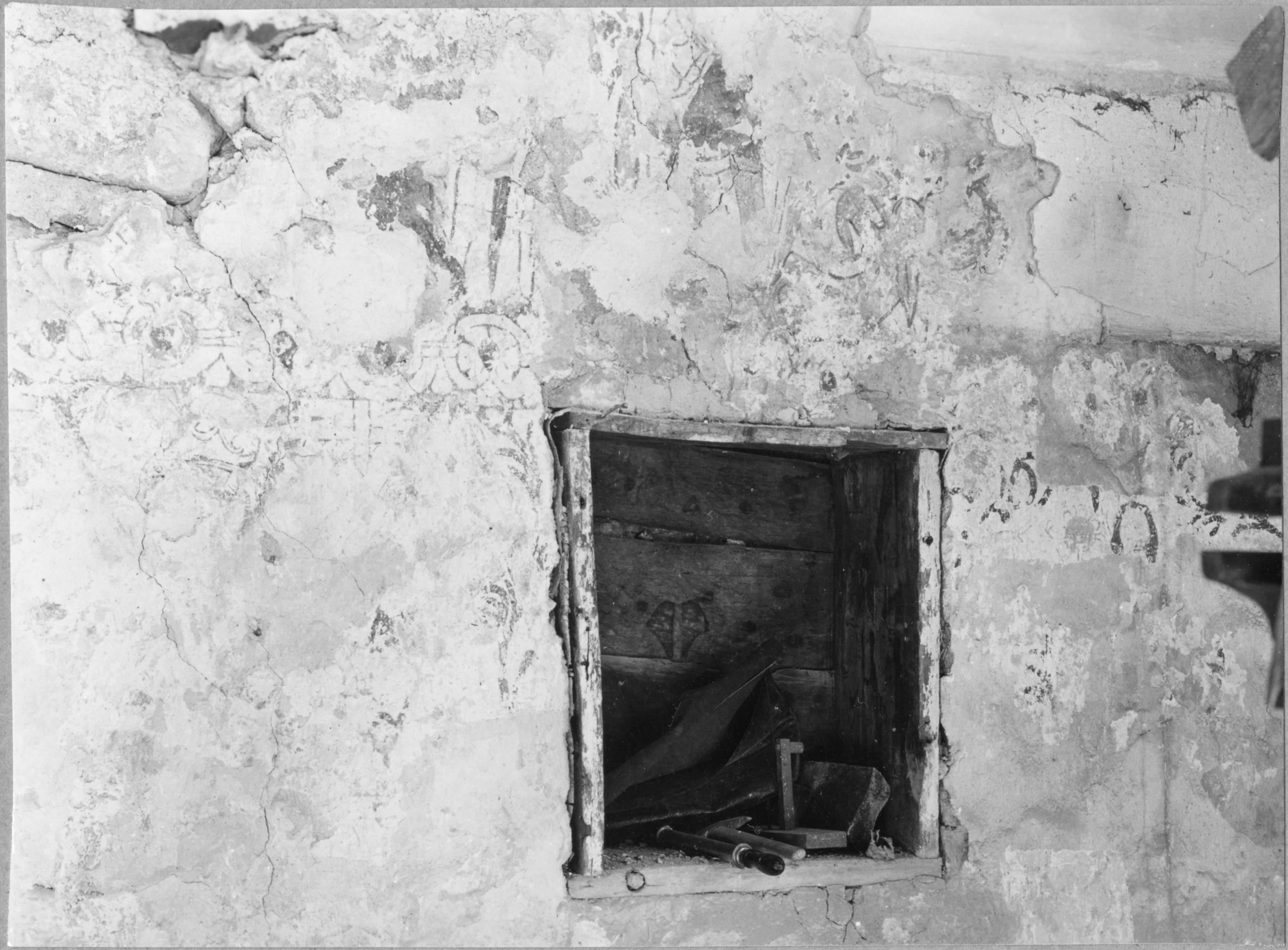 • Kalkmålning, detalj på väggen mot norr. Medeltida.