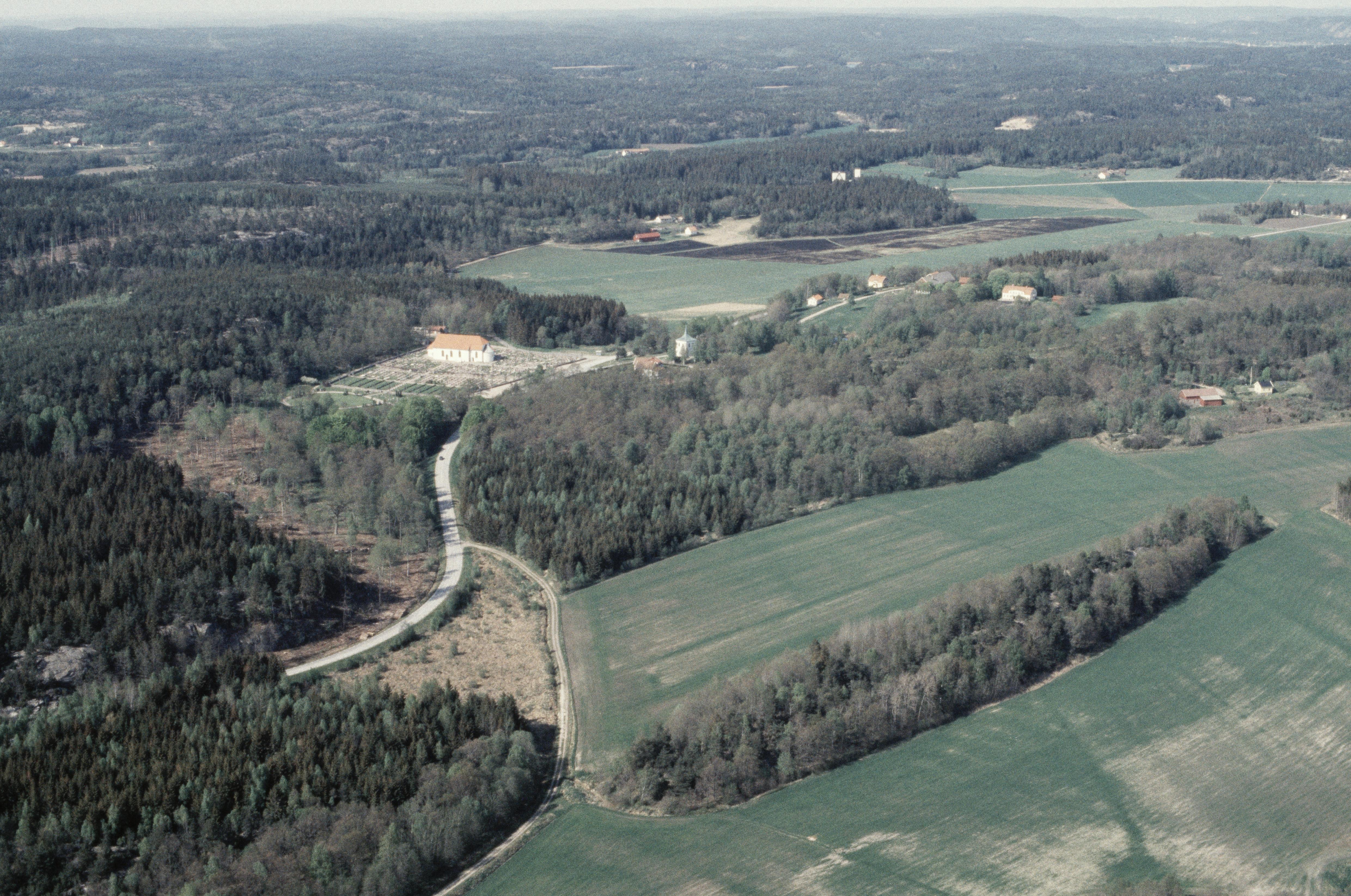 Skee kyrka uppe till vänster. Bilden är tagen mot (väderstreck): NO Fotosyfte: Flygbildsdokumentation