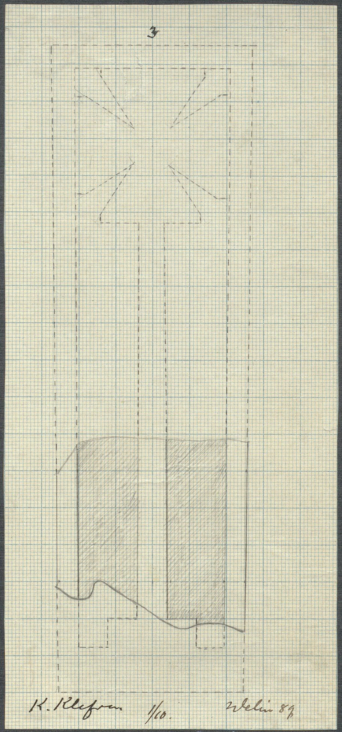 • Fragment av gravsten. Blyertsteckning av Sanfrid Welin 1889.