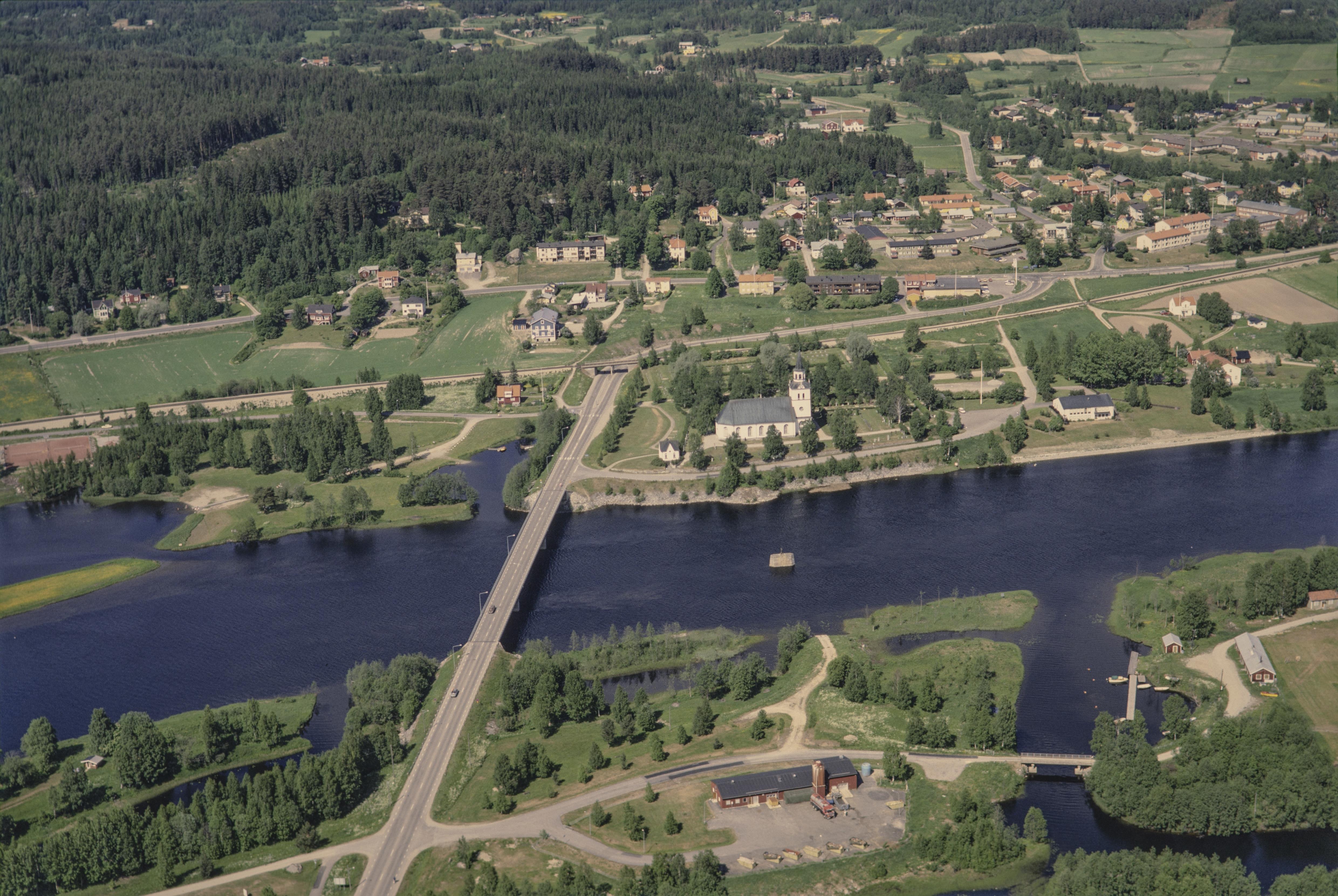 • Ån Ljungans dalgång vid Stödesjön. Stöde kyrka och kyrkby i bildens mitt. Vid stranden under bildens mitt grav RAÄnr Stöde 50:1. Bilden är tagen mot (väderstreck): N