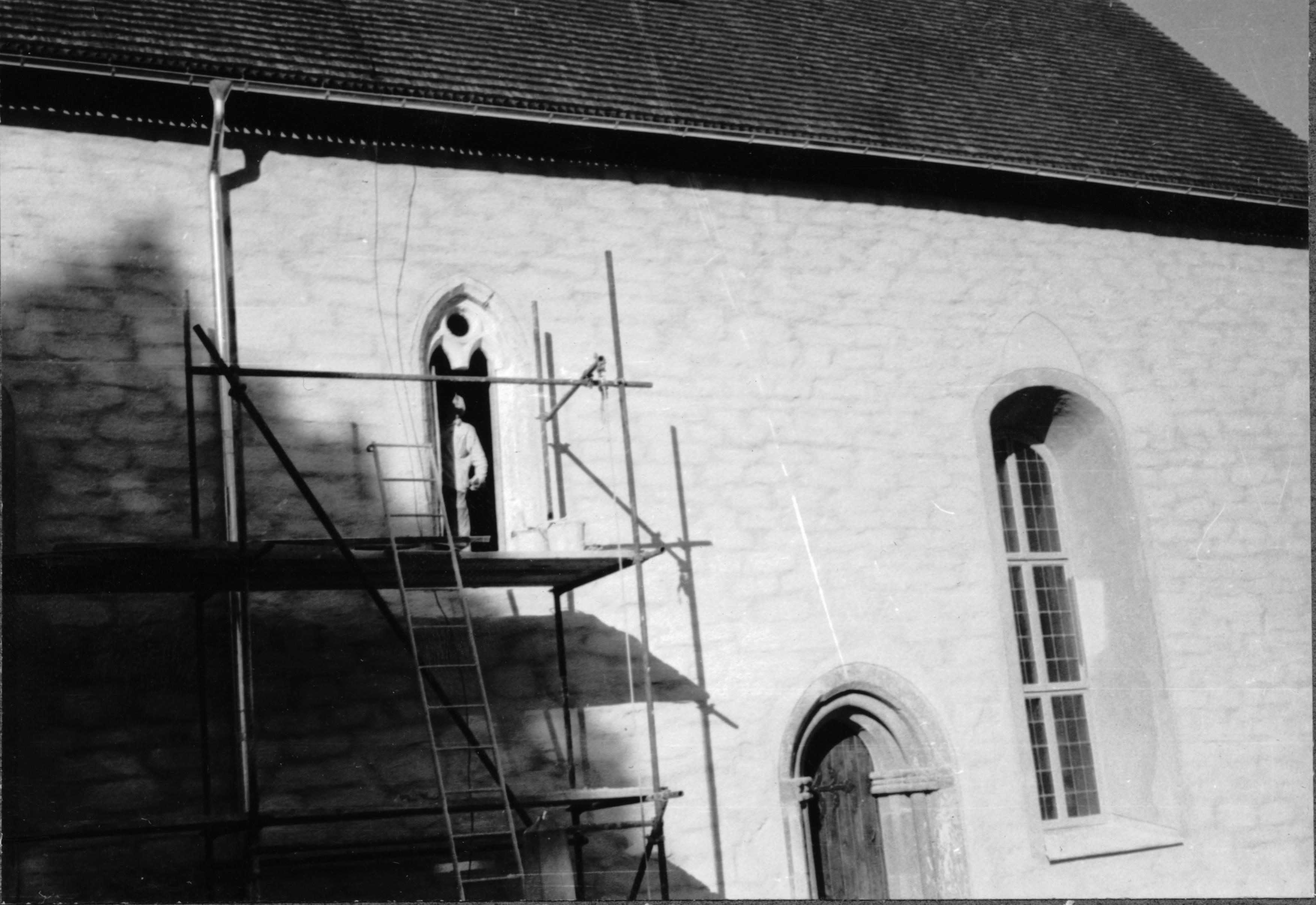 • Gotiska fönstret under restaurering.