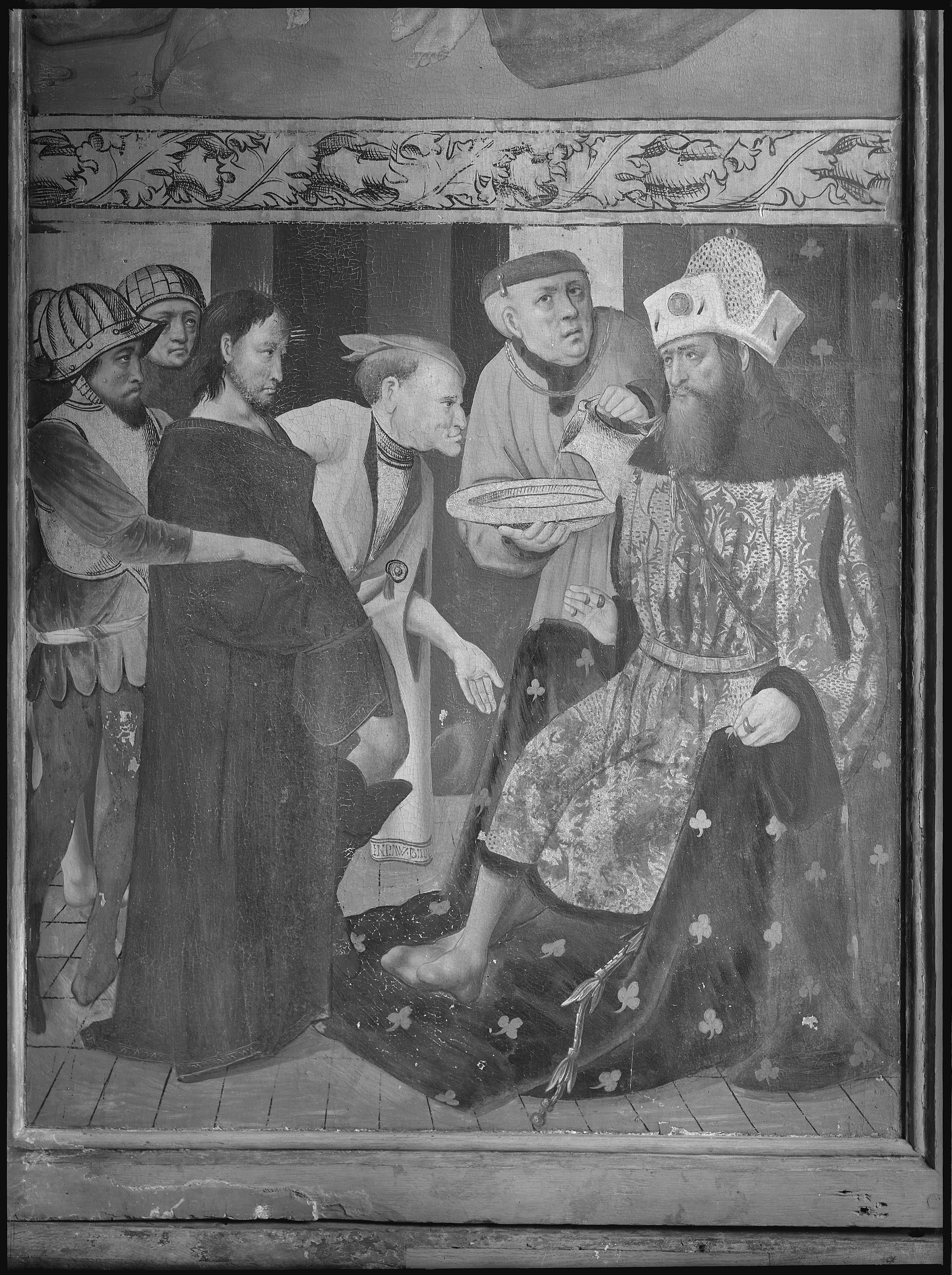 • Altarskåpet, målning, Kristus inför Pilatus. Efter restaurering.
