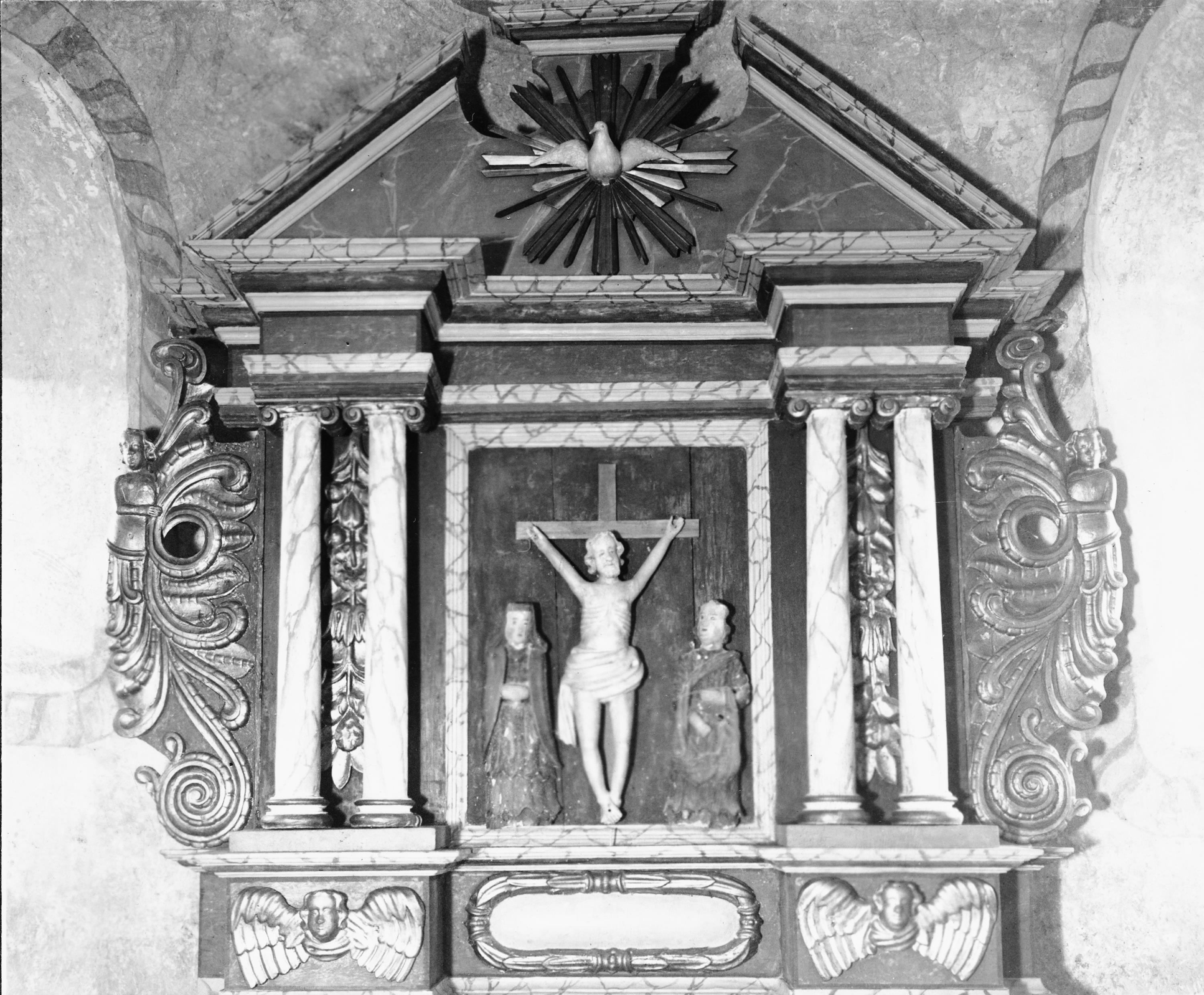 • Altaruppsats, utförd av J. Älvenberg 1710. Före konservering.
