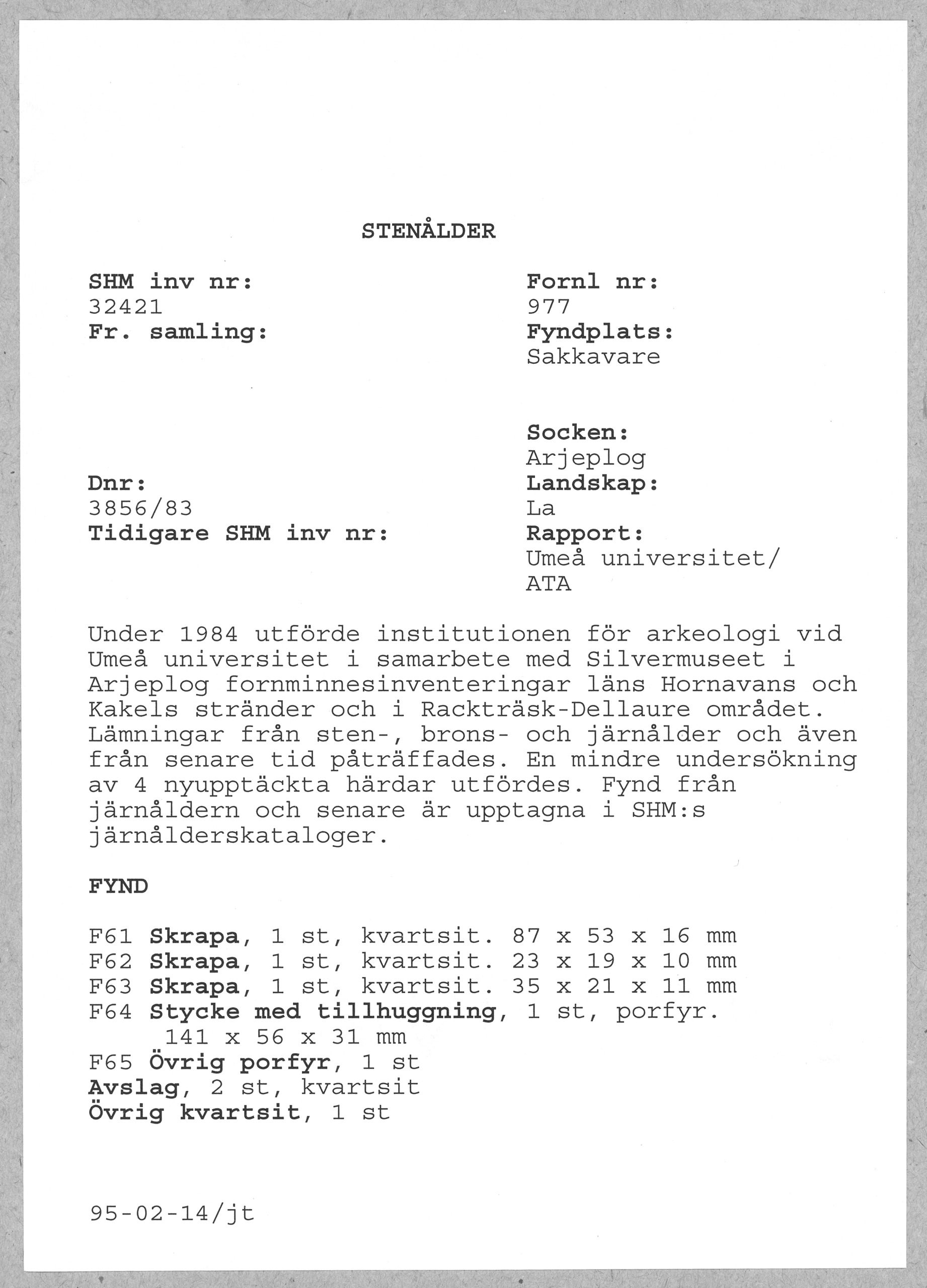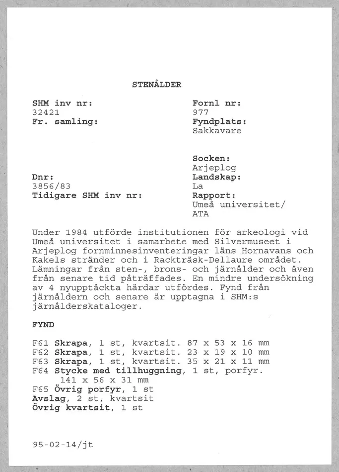 • Tillkomst 2005-06-28 av Historiska museet.