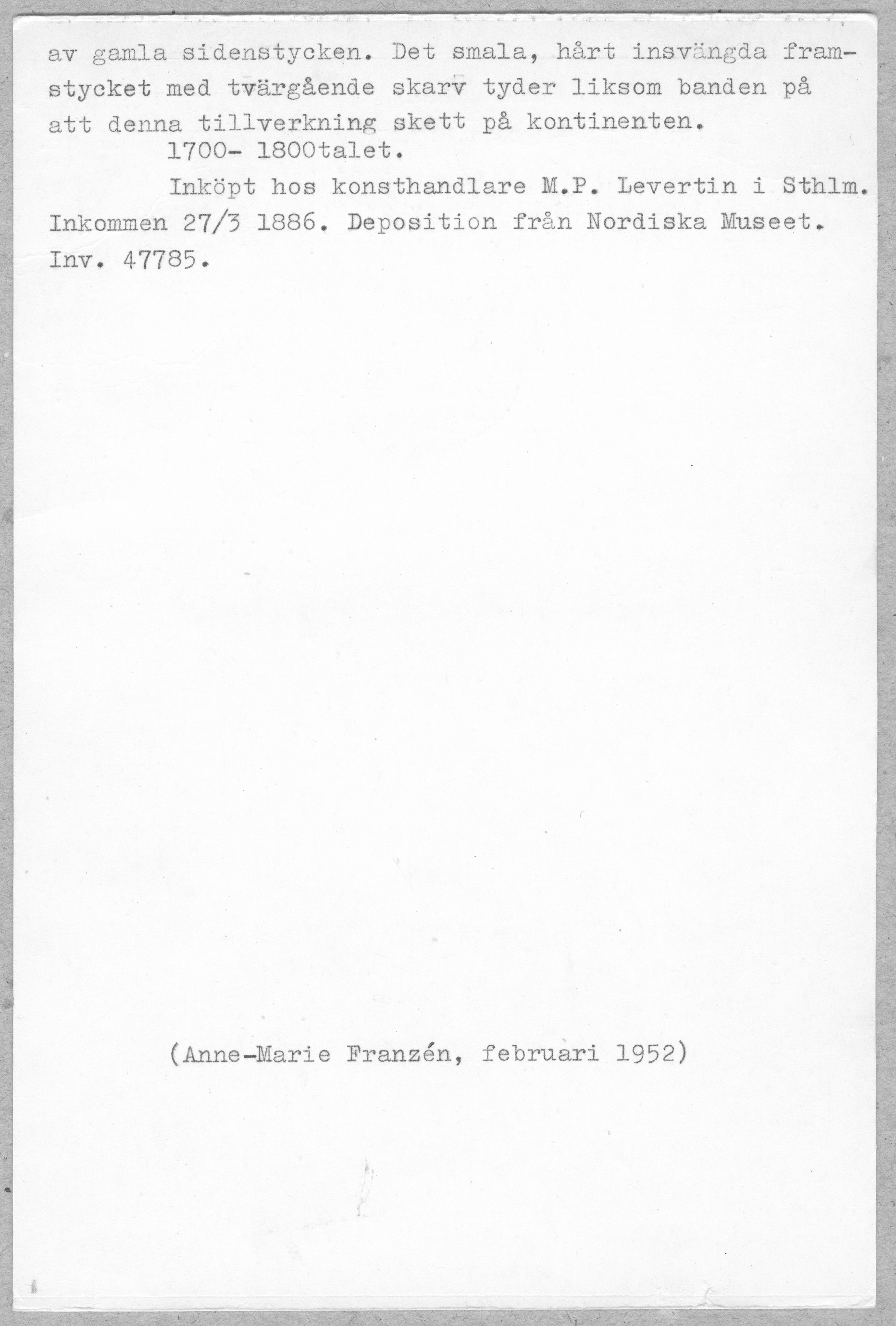 • Tillkomst 2003-02-14 av Historiska museet.