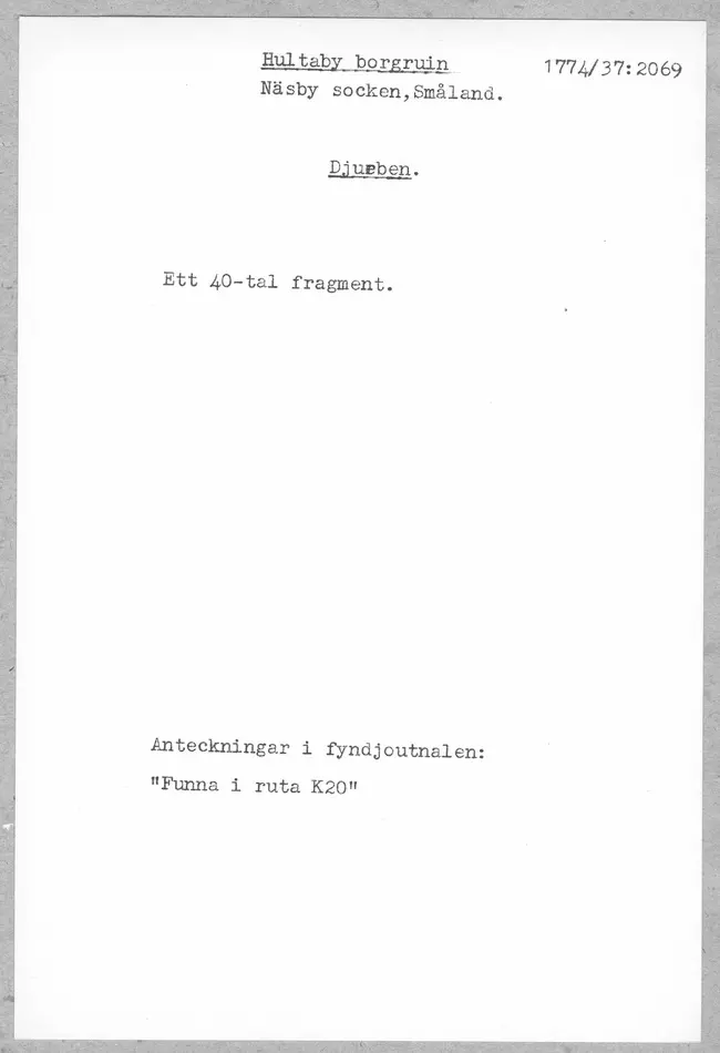 • Tillkomst 2005-11-29 av Historiska museet.