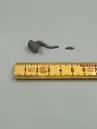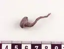 • Ändknopp (fassetterad?) med bit av ten till halsring? Skadat ytskikt.