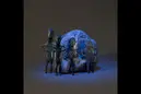 Statyett av brons föreställande en naken kvinna med dubbel halsring som enda prydnad. Små markerade bröst, armarna hålls i ett slags "höfterfäst" och bildar öglor mot kroppen, de avslutas utan händer. Navel markerad på magen. Benen är åtskilda och avslutas utan fötter. Statyetten är platt med rak profil. Halsringen har delvis bevarad ornering av snedställda streck. Saknar tydliga markeringeringar ...Visa hela