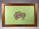 • En del av ett getingbo inramad i trä och glas.