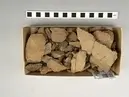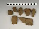 • Fragment av kärl med fast magring. Godset är rödgul i färgen. Glättad yta. Odekorerad.