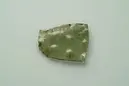 • Skärva av grönt, troligen formblåst glas med bubblor. Recent? Om det är från romersk järnålder har det inga paralleller i Sverige.