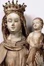• ek med smärre komplement i annat lövträ. Kondition: Marias högra hand och krona fragmentariska, barnets båda händer förlorade. Färg: betydande partier bevarade.