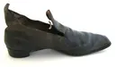 Sula och klack är av svart pressat skinn. Klacken är låg och bred, 66 mm lång, 64 mm bred och 35 mm hög. På klackens undersida syns små nubb i kanten och i sulans kant syns små vita handsydda stygn.
