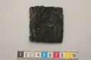 • Bälteplatta av brons med silverinfattning. Eldskadatd.