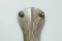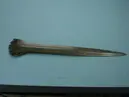 • Svärd av brons med våglinjer med inläggningar av koppar och/eller harts samt två nitar med stora huvuden. Även uttag på grepplattan för ytterligare 2 nitar. Klinga med mittås och kantföljande linjer