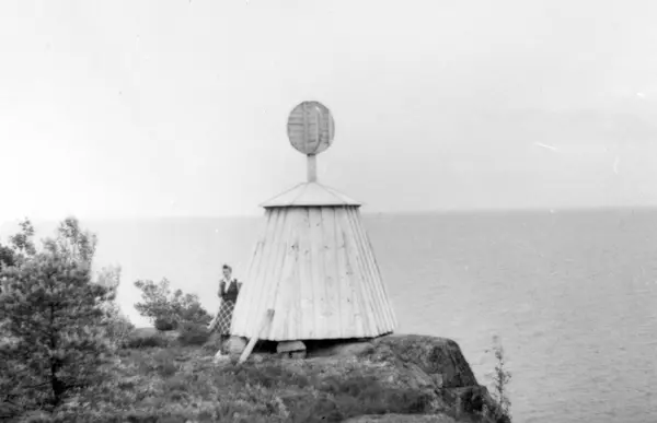 Båk vid Vänerstranden vid fornminnet Järbo rös. Dalsland, Bolstads sn, Järbo rös.