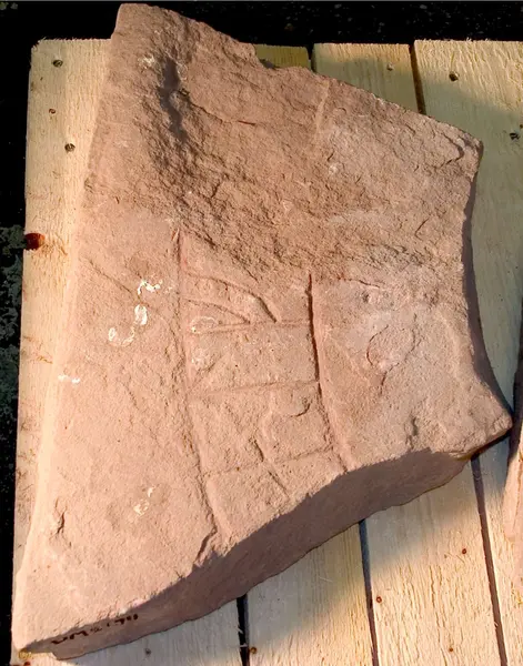 Fragment av runsten U680, tillvarataget 1948 på kyrkogården vid Skoklosters kyrka, Skoklosters socken, Uppland.