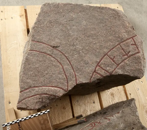 Fragment av runsten U941 tillvarataget i Franciskanklostrets område, kvarteret Torget, Uppsala