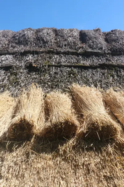 • Omläggning av halmtak på fähus, Kaplansgården, Härkeberga socken, Uppland 2019