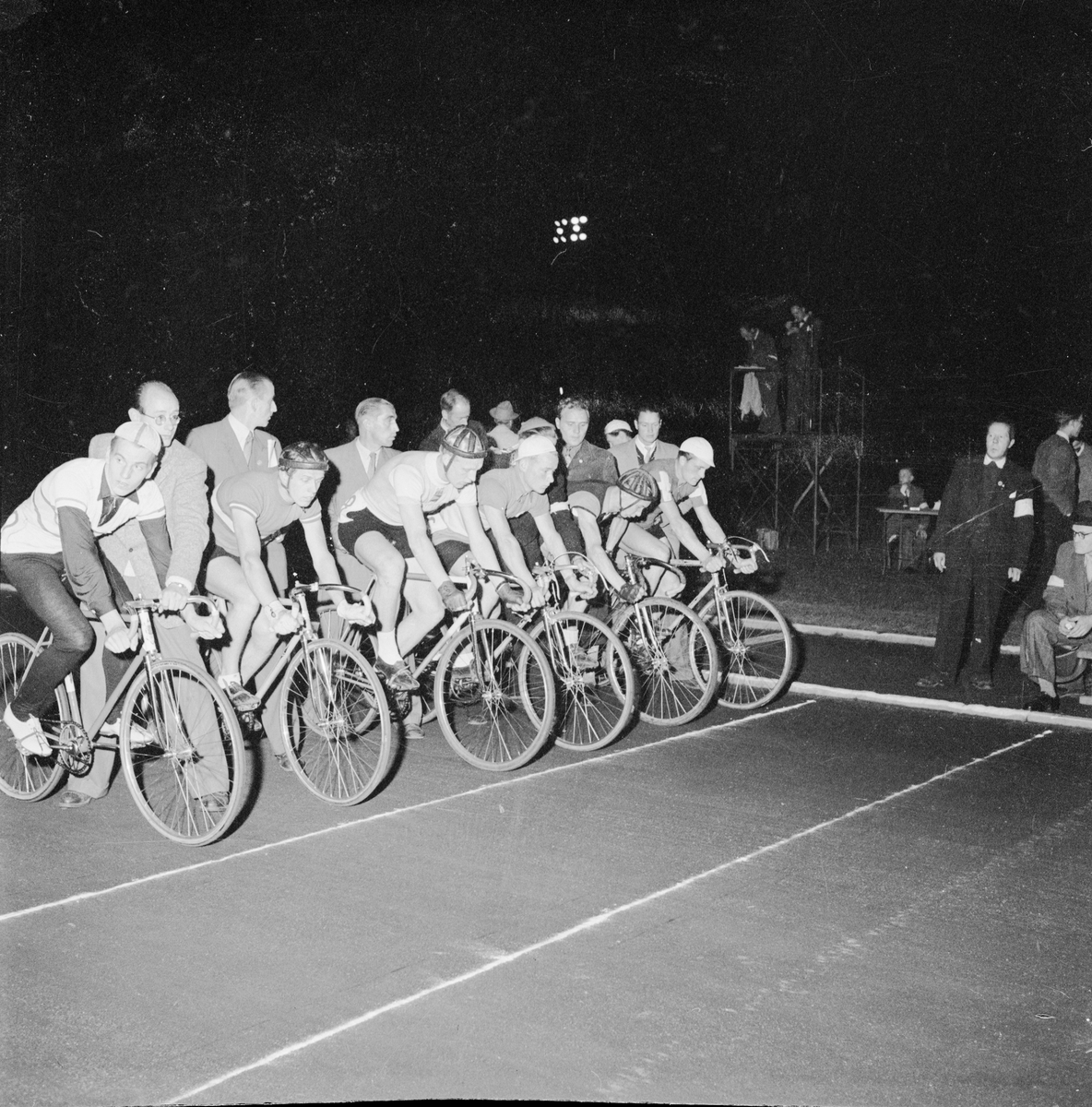 Cykeltävling, bancykel, Studenternas IP, Uppsala, september 1947