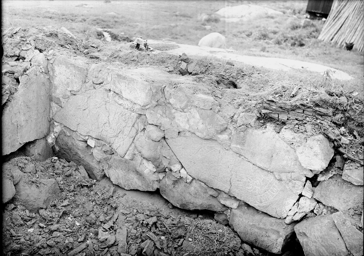 Inmurade runstensfragment, Håmö, Läby socken, Uppland 1939
