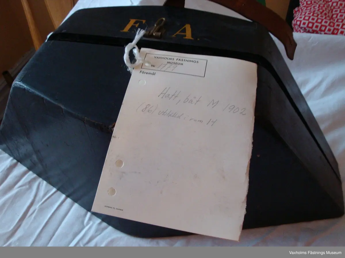 • Båthatt m/1902 , parad för överste vid KA. Med hattask.