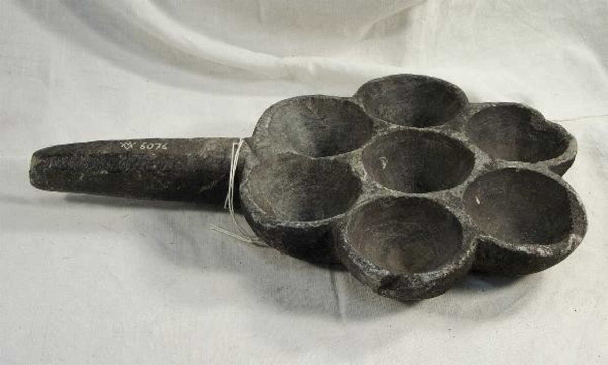 • Munkpanna för sju munkar. Pannan är täljd i ett stycke i täljsten.