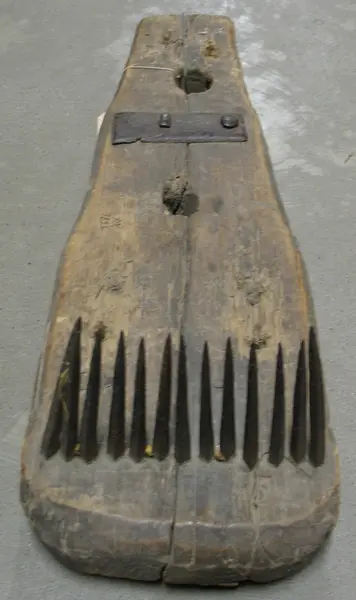 • Linrepa av trä med metallpiggar, avsmalnande form.