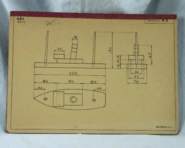 • Ritning använd i yrkesskolan för träslöjd på skolan.