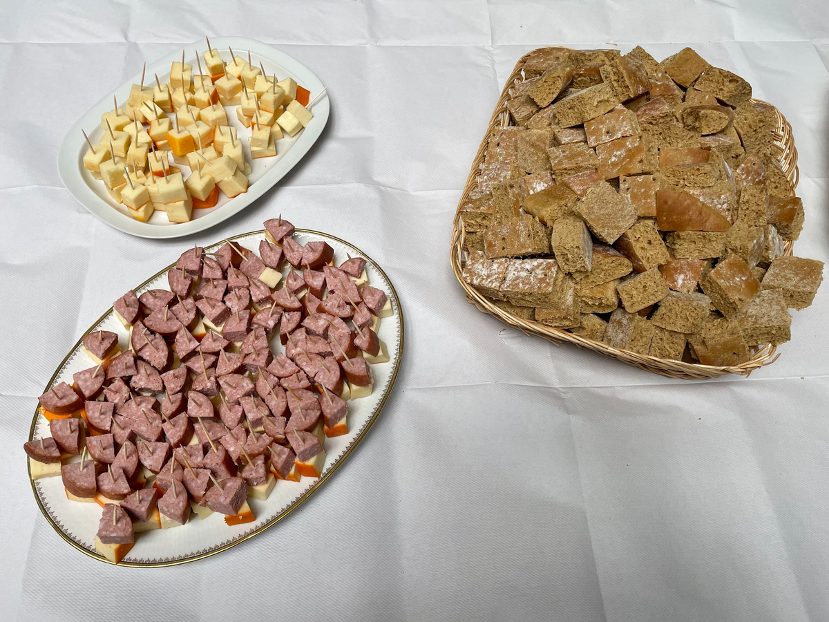 Det bjöds på svagdricka, ost, rökt korv och bröd