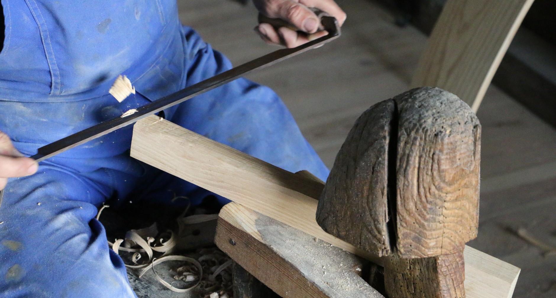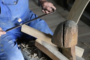 The sound of carving a spoke for a wooden wheel. The recording was realized in the National Museum of Agriculture and Agricultural-Food Industry in Szreniawa (Poland). A wheelwright is carving a spoke from wood; it is to be used in a cart or carriage wheel. Recorded activity was performed by a trained craftsman. Tools are original and dates back to 1970s.