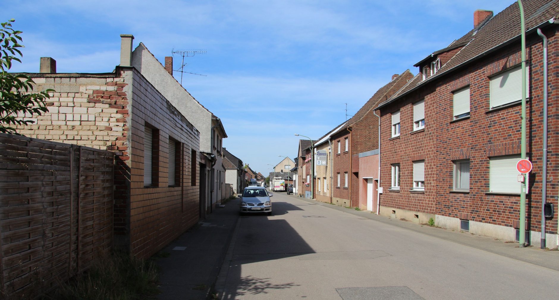 One of the villages that will disappear soon is Morschenich-Alt (old Morschenich). By 2024 the diggers of the Hambach mining district will have reached the old village. Many of its inhabitants have already moved to Morschenich-Neu (new Morschenich), where the village has been rebuilt, and other places. The RWE AG, the energy cooperation that executes the mining, reimburses the former inhabitants and reserves building plots for them. Originally Morschenich-Alt had 600 inhabitants. Now there are less than 150 people left. Some of them are refugees. The city council offered them the empty houses as a temporary home. In 2040, after the diggers have excavated all the coal, the hole will be filled with water and turned into Hambacher See (Lake Hambach).