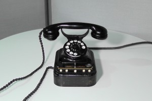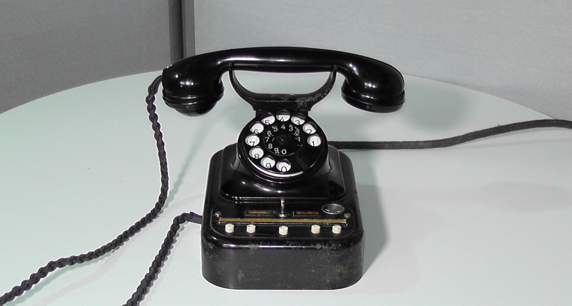 Automatic telephone set by Siemens with black metal casing and Bakelite handset. It was produced before World War One.