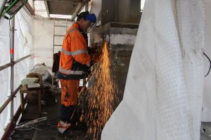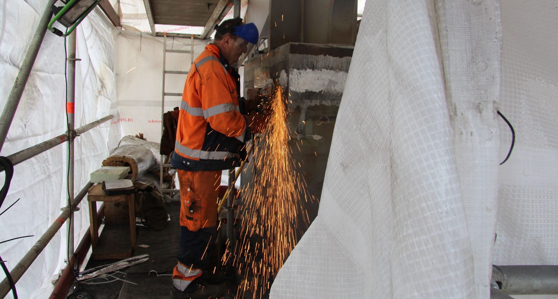 One of the main construction sites of the project is a new bridge over the river Neckar. The bridge, which is made from steel and concrete, is supposed to connect the new central station and Stuttgart-Bad Cannstadt. In this recording you can hear the sound of an angle grinder as it is used to grind the steel construction of the bridge.