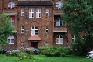 A typical residential building in Nikiszowiec has three floors and connects with the neighbouring ones to form a closed circular structure with a large courtyard in the middle. In the past there used to be pigsties, storage sheds and bread ovens in the courtyard. Currently, there are lawns, small gardens, playgrounds and parking spaces for the residents. In addition to the buildings which contained a total of approx. 1,000 flats (mainly with 2 rooms), the housing estate consisted of an administration building, a bathhouse for the mine workers, a lodging house, a church, an inn, and a school.