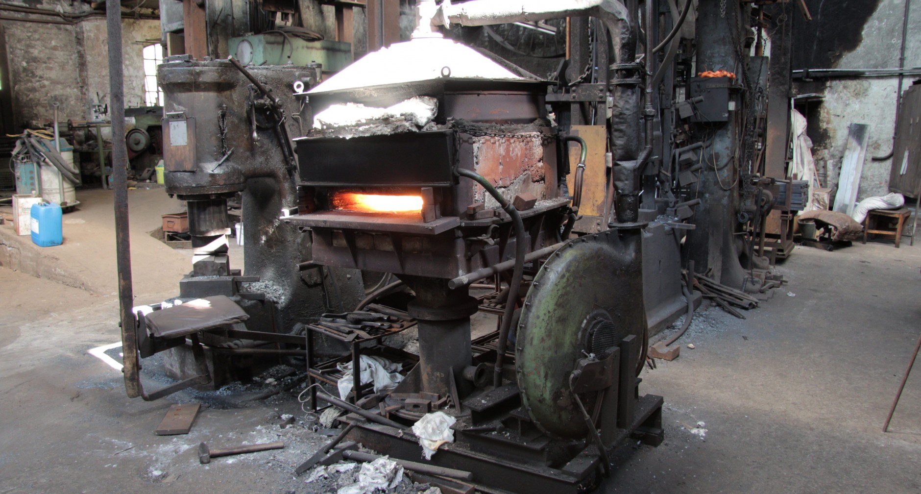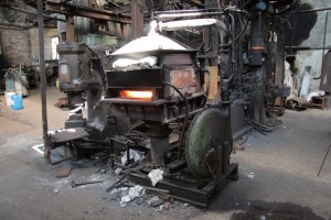 The recorded working noises here are the sounds made by the production of forging-hammer heads in the tool company Krenzer Hammer. It is the last open-die forge still operating today in Ennepetal. Since 1914 the tool factory has been manufacturing tools such as crowbars and forging hammers. The products and production methods haven't changed significantly since then. The production facilities, which are almost 100 years old, are still functional and in use today. The following steps in the forging of these hammer heads can be heard on the recording. In the forging furnace the smith heats the iron billets up to a temperature of ca. 900-1000°C. In a stamping press the glowing steel is punctured with a hole for the handle. Using drop hammers and air hammers the smith forms the billet into a hammer head. These hammers are connected to a transmission machine, which is driven by an electric motor (or a water turbine). Finally, the hole for the handle is “flared” to the right size, and the hammer head is hardened in water.