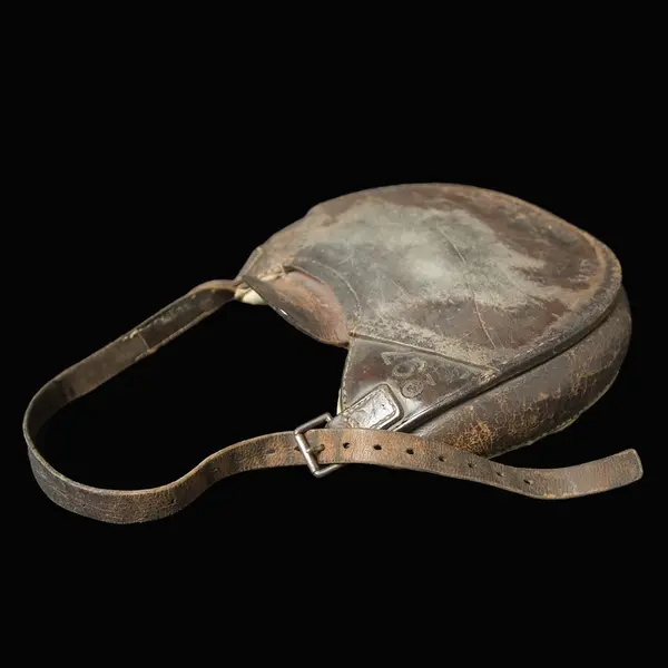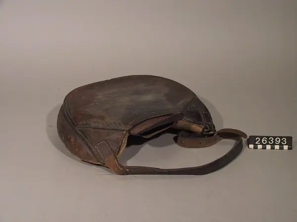 • Bärdyna (puta) för stabbläggare, av läder och tyg med stoppning. Brännstämplar: "K A B" (Korsnäs Sågverks AB) och "297".