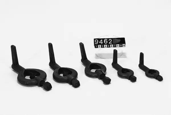 • Sex medbringare av olika storlekar av aducerat, galvaniserat järn, för speciellt ändamål. Medbringare till svarvar. Längd: 75-195 mm. Totalvikt: 2,5 kg.