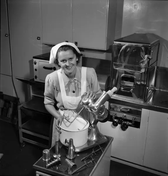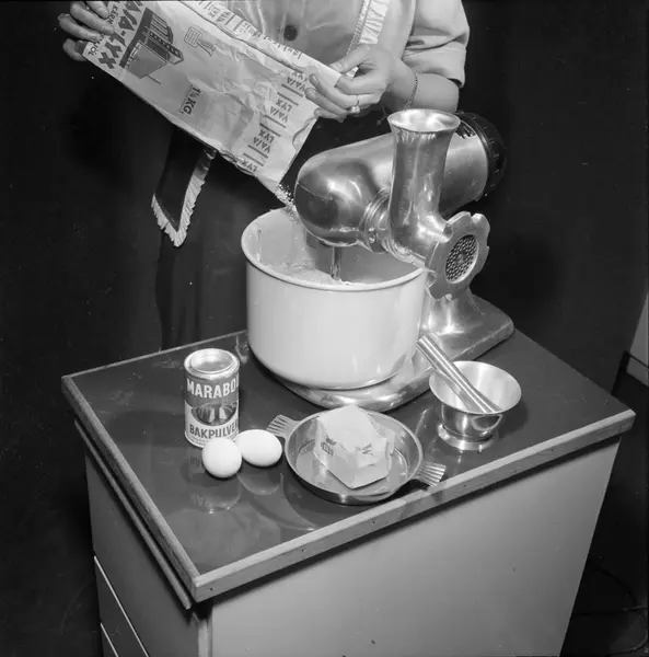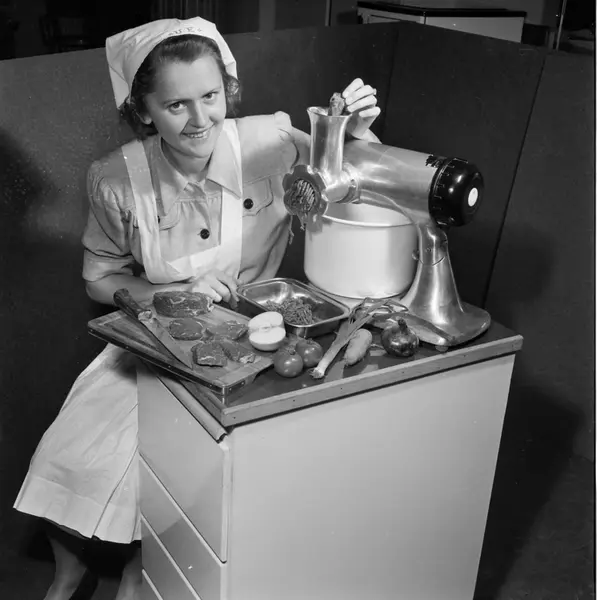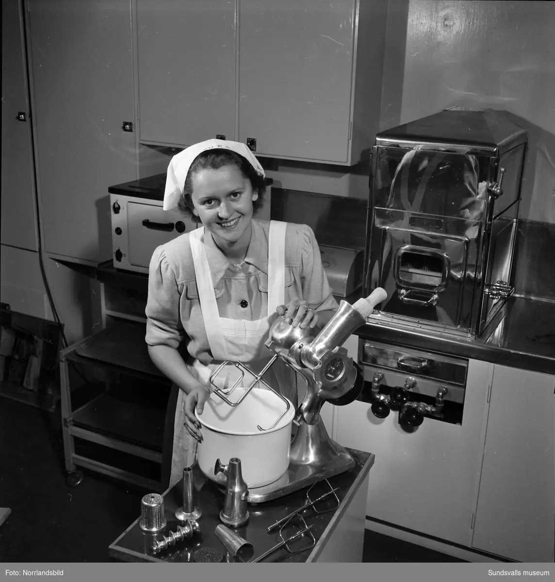 Demonstration av köksmaskiner på Lindgrens järnhandel.