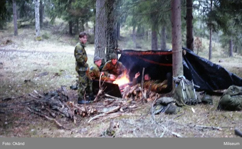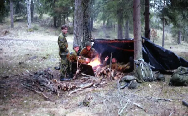 Tillfällig bivack med vindskydd.