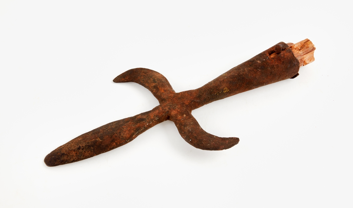 • Hillebard med avsågat träskaft. Järn, smitt.