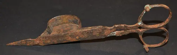 • En ljussax i metall. Rostig.