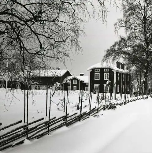 Gården Sunnanåker med fastbandhage och mycket snö, februari 1986.