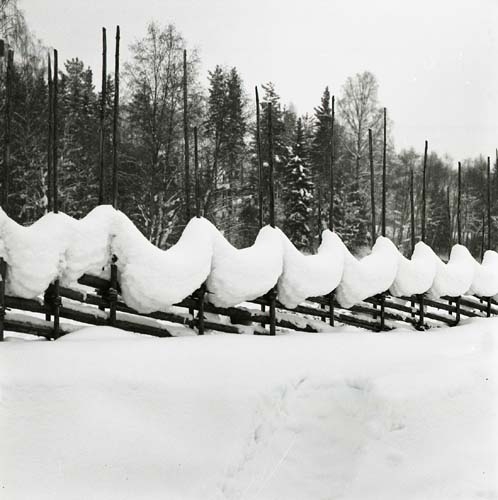 Fastbandhage med snögirlanger, Sunnanåker februari 1986.