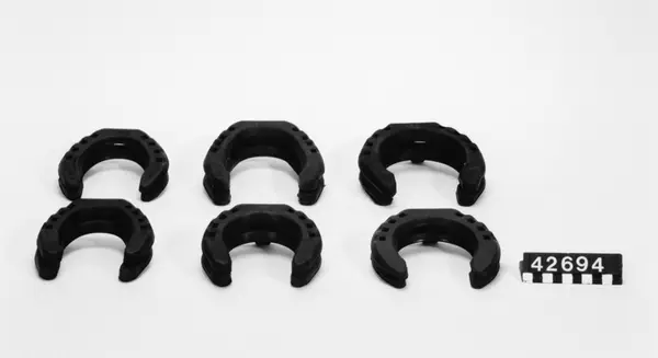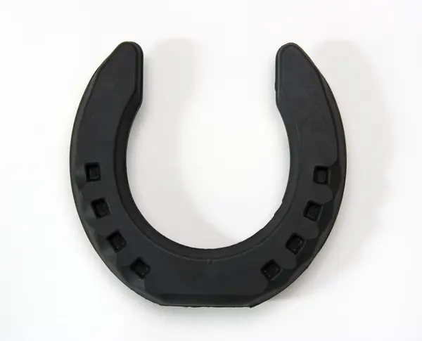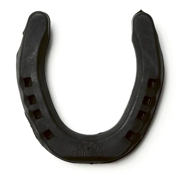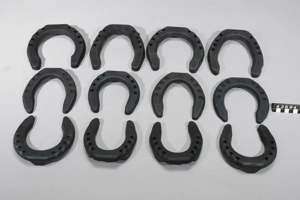 12 hästskor av gummi och stål. 3 storleksuppsättningar. Hästskorna består av en 5 mm tjock stålkärna med tå och sidokappor som också är i stål. Mellan hov och stålskena är skon klädd i 1 mm gummi och ...